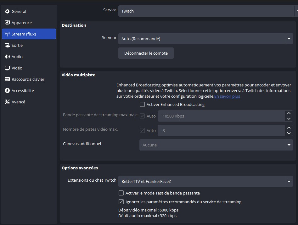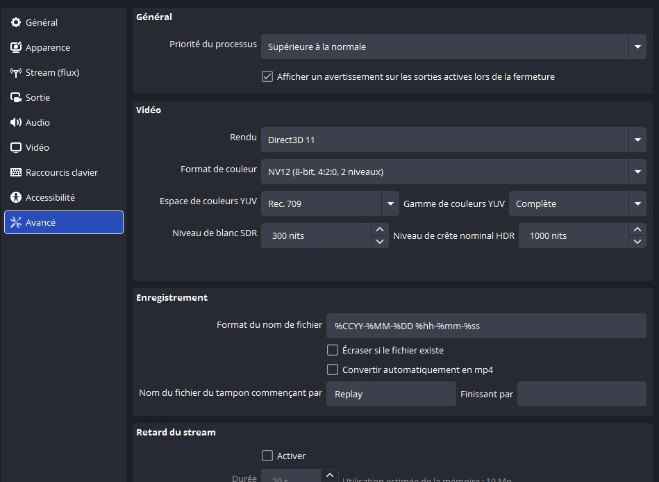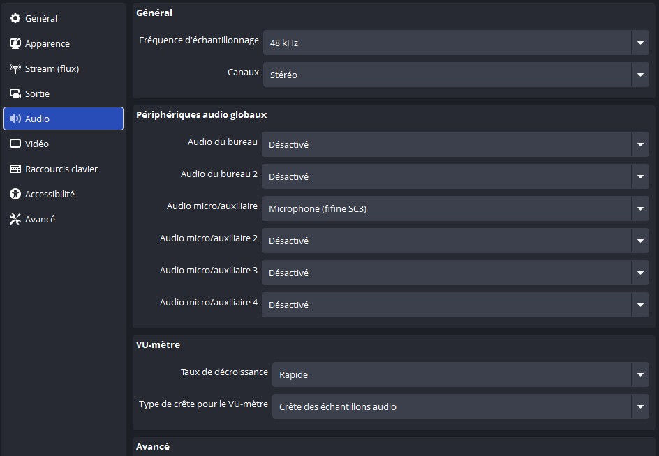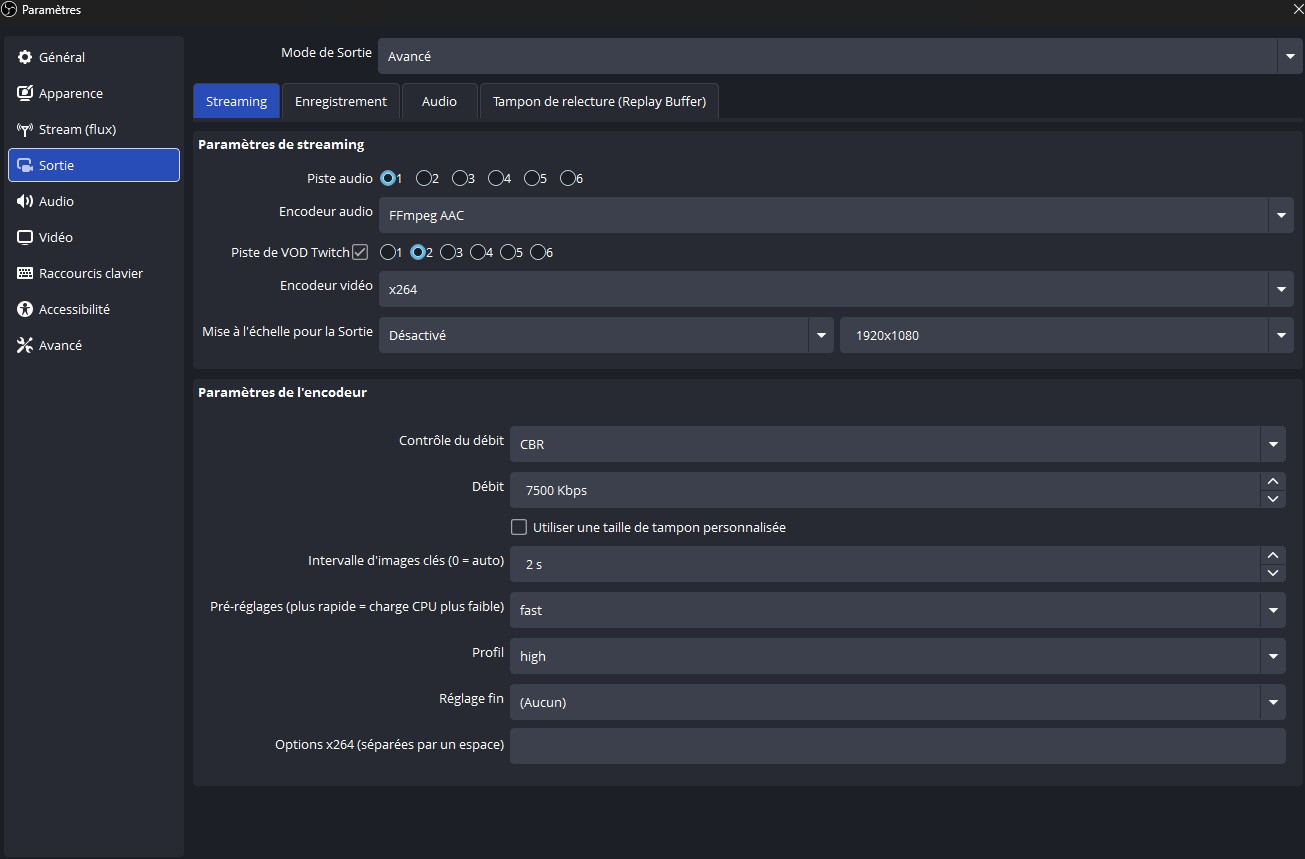 Camel Design Posté(e) il y a 13 heures Posté(e) il y a 13 heures Bonjour à tous, Je vais vous partager ici les paramètres à utiliser sur Obs studio pour stream sur twitch en x264 et bonne qualité ! Pourquoi me direz vous ? car depuis 1 ou 2 ans nous avons vu l'avènement des gros processeurs multicœurs ainsi qu'une déferlante de mini pc. 1 : le Débit à avoir => il faut au minimum : 10 mo d'envoie (environ 8mo pour stream et 2mo pour tout les applications qui tournent derrière : navigateur, spotify, discord, ect... 2 : la config minimum à avoir (mini pc ou tour gaming) : un processeur de moins d'un 1 ans en générale privilégiez les AMD ryzen série 7, 8 et 9 en 8 coeurs 16 threads ! 32 go de memoire (DDR4 3200 ou plus, mais privilégiez de la DDR5). Voir des exemple de produits conseillés : https://camel-design.com/boutique 3 : La config OBS studio pour le X264 : l'onglet vidéo : canevas : votre résolution d'écran, Mise à l'échelle : 1920x1080, FPS : 30 pour du contenu lent (just chating, react, jeux peu nerveux) et 60 : pour tout contenu avec fort mouvement (jeux video et fps). L'onglet Stream flux : connecté votre compte twitch et cocher la case : ignorer les paramètres recommandés du service. L'onglet Audio : Fréquence : 48khz Canaux : stéréo pour tous et 5.1 ou 7.1 pour les streameurs ASMR selon les spécification de votre ou vos micros. périphérique : désactiver tous, sauf "audio micro" ou vous choisissez votre micro ! (on désactive tous car on préférera ajouter les sources audio manuellement avec des sources). L'onglet avancés : Priorité du processus : supérieur à la normale rendu : direct3D 11 Format de couleur : NV12 Espace de couleur : 709 Gamme de couleur : complète L'onglet Sortie : Piste audio : 1 Encodeur audio : FFmpeg AAC Piste de vod twitch : cocher la case et choisissez 2 (permet de choisir les pistes audio à envoyer sur vos vods et ainsi éviter les strikes ou copyright) Encodeur vidéo : x264 Contrôle du débit : CBR Débit : vous pouvez choisir un nombre entre 6000 et 7500, je recommande 6000 si vous n'êtes pas sur ! intervalle d'images clés : 2 Préréglages : entre Very fast et medium (plus c'est lent plus la qualité sera bonne, mais plus de ressources à fournir) recommandé : Faster ! Profil : High Le sous onglet "enregistrement" de l'onglet sortie : on ne touche a rien ! Nous n'utilisons pas l'enregistrement, le stream est assez propre pour être envoyé directement de twitch à youtube par un simple "exporter" depuis twitch ! Le sous onglet "audio" de l'onglet sortie : mettez toutes les pistes à 320 Voila en ce qui concerne les paramètres x264 pour obs studio et vous êtes techniquement prêt à streamer ! Après avoir bien entendu, ajouter vos scènes et sources et d'ailleurs souvenez vous plus haut dans l'onglet "audio", nous avions désactiver toutes les sources sauf le micro pour avoir un contrôle total et manuel sur notre audio ! Du coup comment ca marche ? Quand vous capturez un jeux par "la capture de jeux" ou "capture de fenetre" pensez à cocher : la case "capturer l'audio beta" pour que ca ajoute son contrôle audio dans votre mélangeur audio obs. quand vous voulez ajouter de la musique à diffuser sur le live mais pas sur vos VODs idem utiliser "capture audio de l'application" ensuite une fois votre source audio visible dans le mélangeur audio d'obs studio, cliquez sur les 3 petits points à coter d'un icone de haut parleur et faite "paramètres audio avancés" et une fenetre s'ouvre avec toutes vos pistes audio et au bout de chacune d'elles, le choix de cocher ou non si elle active ou non sur une piste et souvenez vous nous avons mit dans les paramètres d'obs studio : piste 1 => le live, piste 2 => les vods ! ils vous suffira donc de décocher "piste 1" pour les pistes qui ne doivent pas être enregistrer sur les vods ! Voila vous savez tout, donc je vous souhaite un bon stream et si vous avez des questions n'hésitez pas à les poser j'y repondérais avec plaisir, n'oubliez pas si vous voulez me soutenir vous trouverez des liens de donations un peu partout sur toutes mes plateformes de communications ! Merci d'avance Cordialement Camel Design Webdesigner chez : camel-design